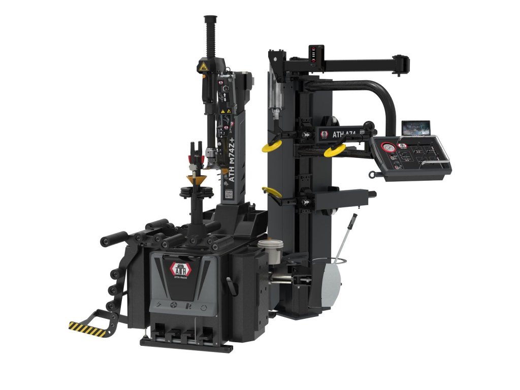 Profesionálna prezúvačka pneumatík ATH M74Z PLUS s novým pomocným ramenom A74, integrovanou kamerou a plnou pneumatickou podporou pre bezpečnú montáž nízkoprofilových, UHP a Run-Flat pneumatík do 26".