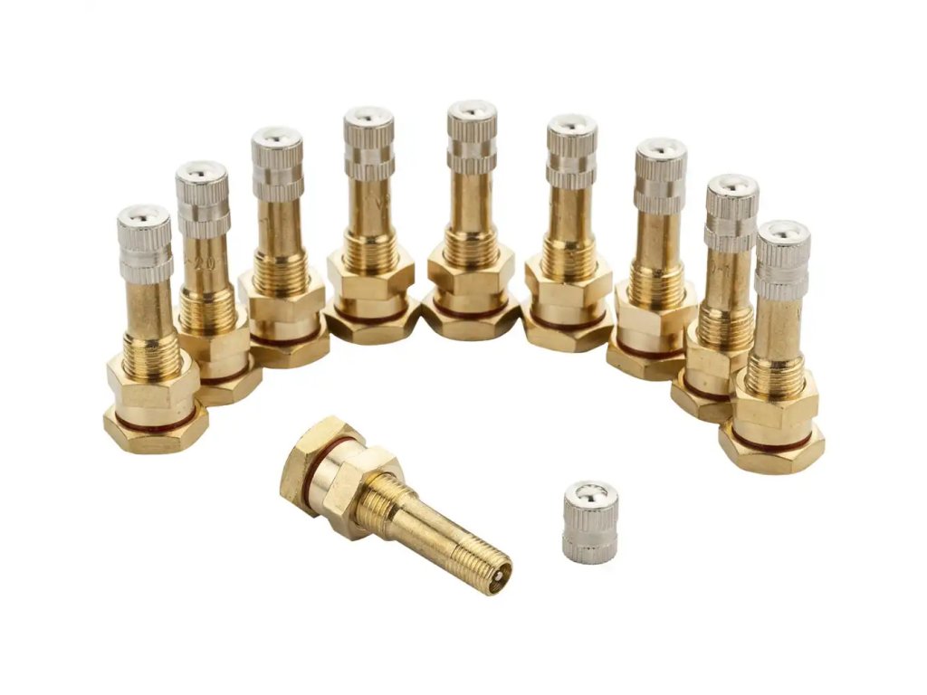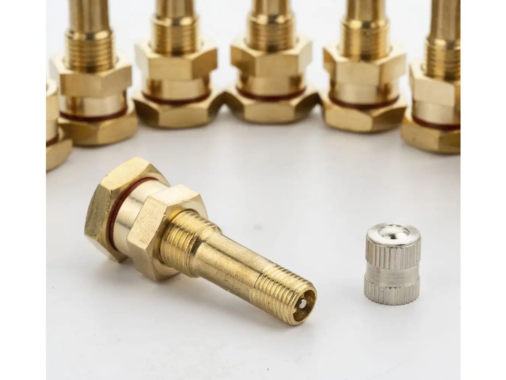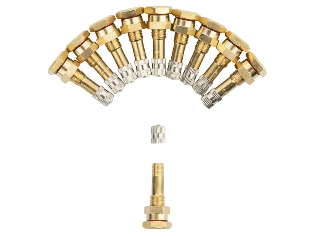 Skrutkovací ventil pre bezdušové kolesá nákladných automobilov, stavebných vozidiel, priemyselných vozidiel, špeciálnych autobusov a prívesov. Ventil je vyrobený z odolného kovu a miesto kontaktu s ráfikom je chránené gumovým tesnením. Kompletný ventil s pružinovou vložkou a kovovým uzáverom s tesnením.