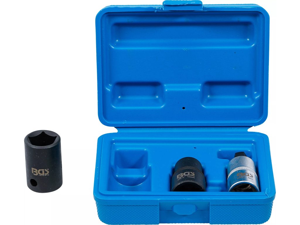 BGS technic 1112 je sada 3 špeciálnych nadstavcov 1/2" určená na servis brzdových strmeňov dostupných VAG, Opel a Ford.