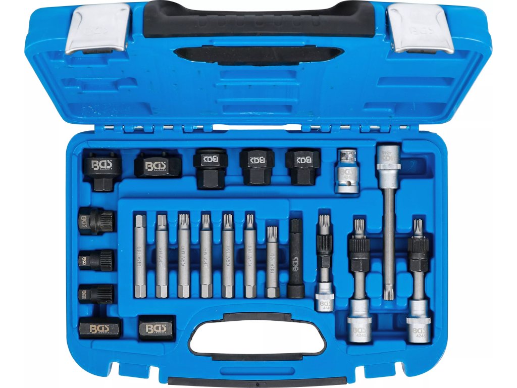 Profesionálna 23-dielna sada bitov a nástrčných kľúčov BGS 4247 určená na servis a opravy alternátorov. V praktickom kufríku pre prehľadné usporiadanie.