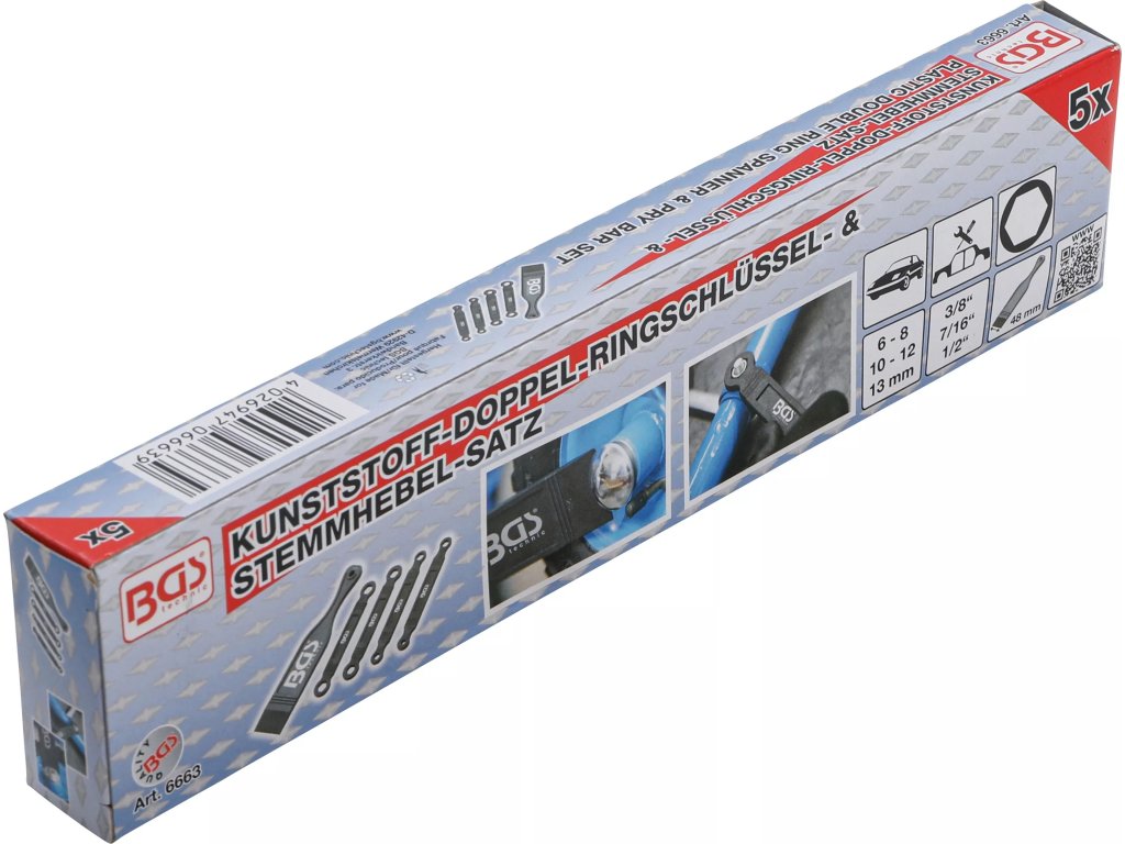 Profesionálna sada montážnych pák BGS 6663 je určená pre bezpečne a demontovanie interiérových a karosárskych prvkov, ako sú čalúnenie, plastové obklady, lišty, klipy či rámy autorádií. Vďaka plastovému prevedeniu nehrozí poškodenie laku, čalúnenia ani plastových dielov.