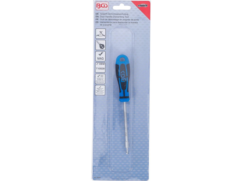 Demontážny nástroj BGS 6699 je praktická pomôcka pre mechanikov a karosárov pri rozoberaní vnútorných kľučiek dverí v koncernových vozidlách VAG. Je navrhnutý tak, aby umožnil rýchlu a bezpečnú demontáž bez rizika poškodenia plastových častí alebo čalúnenia.