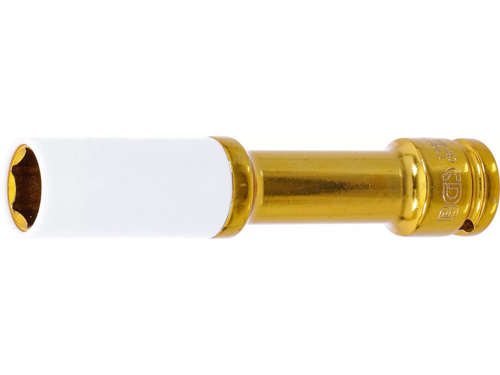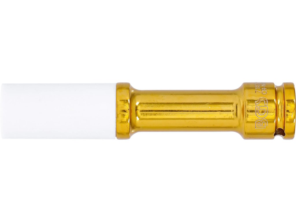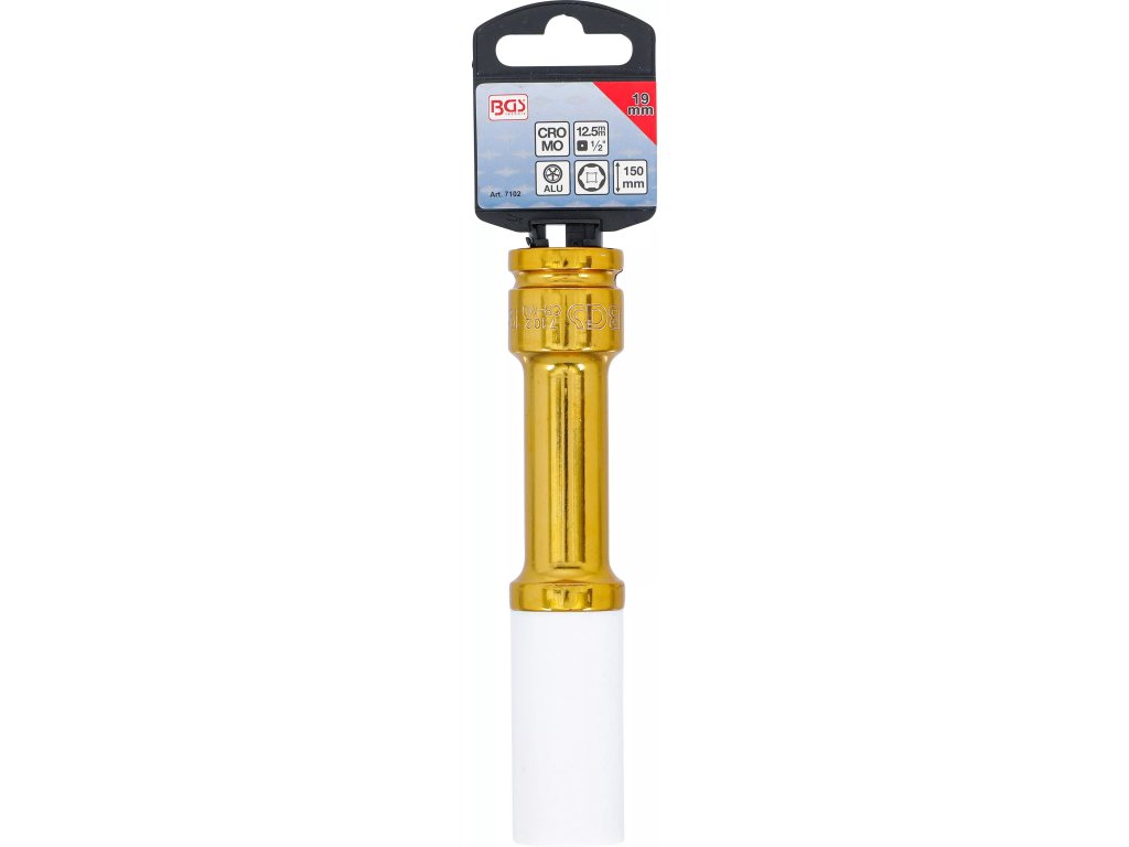 Ochranná rázová hlavica BGS 7102 je určená na bezpečné povoľovanie a uťahovanie kolesových skrutiek bez poškodenia diskov. Extra dlhé vyhotovenie 150 mm zjednodušuje prístup k utopeným skrutkám. Robustná chróm-molybdénová oceľ (Cr-Mo) zvláda rázové zaťaženie, profil Pro Torque® (šesťhran) zabezpečuje istý záber a presný prenos krútiaceho momentu. Vstupný pohon 1/2" (12,5 mm) – vnútorný štvorhran. Praktické balenie je vhodné na zavesenie na stenu.