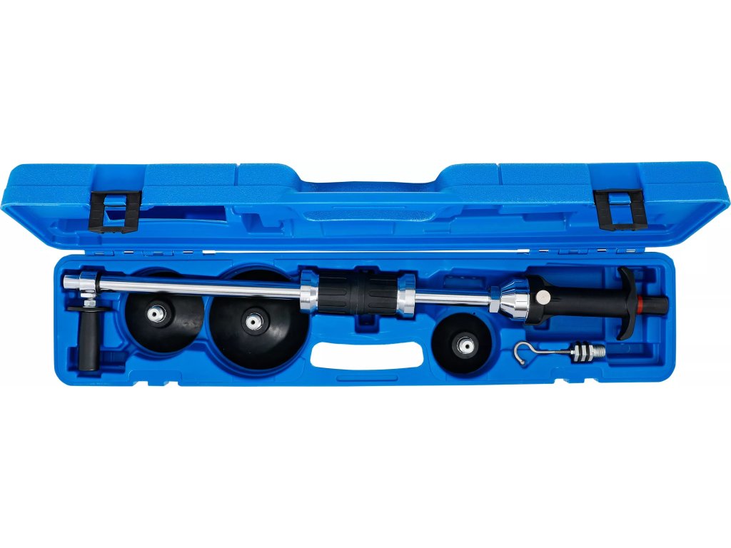 Profesionálna PDR sada pre šetrné vytiahnutie preliačin bez lakovania. Ručná podtlaková pumpa, 3 prísavky Ø70/100/125 mm a 1,1 kg posuvné kladivo pre presné a kontrolované „ťahanie“.