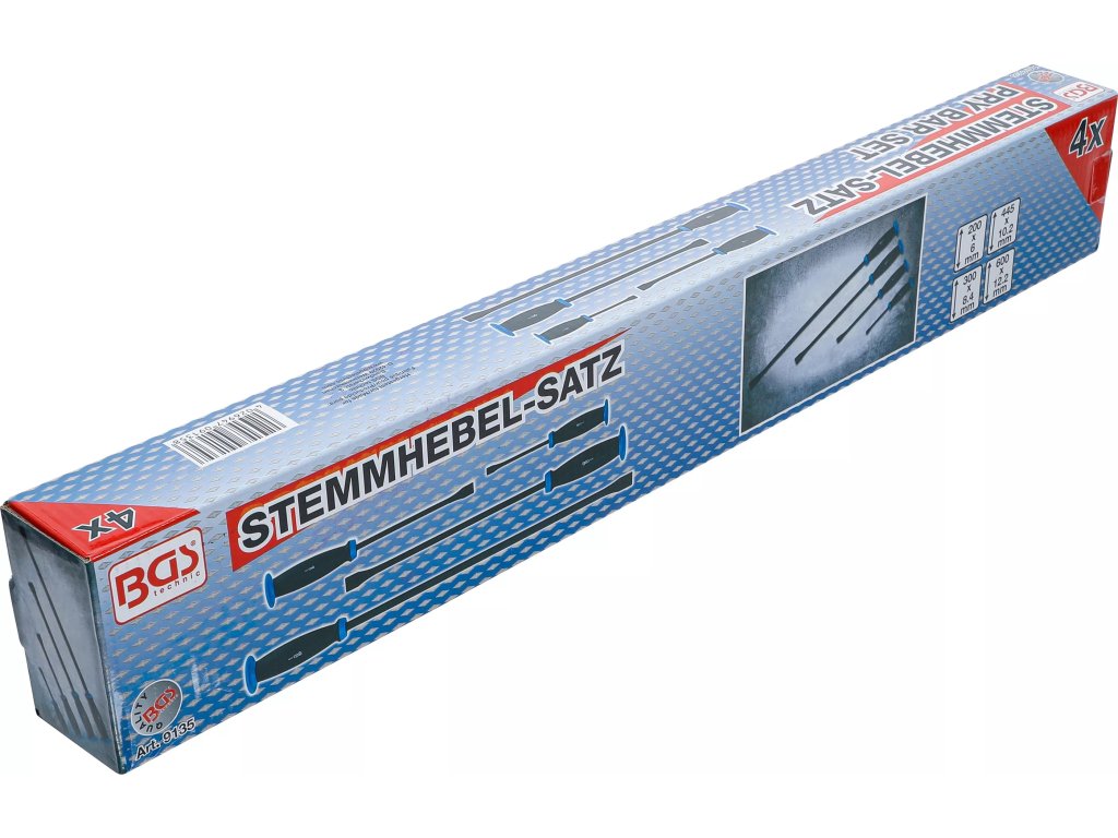 Profesionálna sada montážnych pák BGS 9135 obsahuje štyri páky rôznych dĺžok, ktoré zahŕňajú široké spektrum montážnych a demontážnych prác. Umožňujú efektívne páčenie, vyrovnávanie a manipuláciu s nutnými súčiastkami či karosárskymi dielmi.
