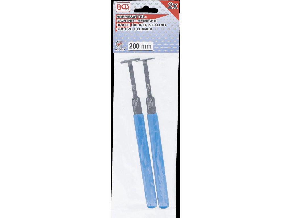 Sada BGS 9171 je určená na dôkladné vyčistenie drážok tesnenia v brzdových strmeňoch pri servise bŕzd. Obsahuje 2 čistiace nástroje s rozdielnym tvarom škrabacej časti, takže sa lepšie prispôsobia rôznym miestam v drážke. Vďaka vysokej tvrdosti sú vhodné na odstraňovanie usadenín, zvyškov nečistôt aj hrdze, čo pomáha pripraviť sedlo tesnenia na ďalšiu montáž.