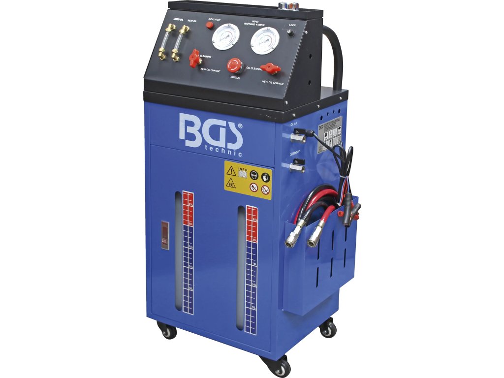 BGS prístroj na výmenu a preplach oleja v automatickej prevodovke je určený na extrakciu starého oleja, doplnenie nového oleja a aj na čistenie celého okruhu automatickej prevodovky. Zariadenie je vhodné nielen na samotnú výmenu oleja, ale aj na preplach automatických prevodoviek, meničov krútiaceho momentu, olejových chladičov a olejových vedení.