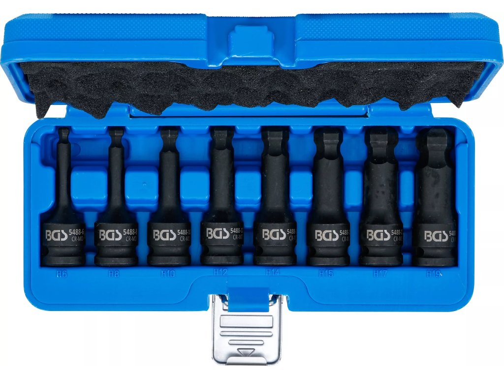 BGS rázová sada imbusových bitov s guľovou hlavou 1/2" – 6–19 mm (8-dielna)