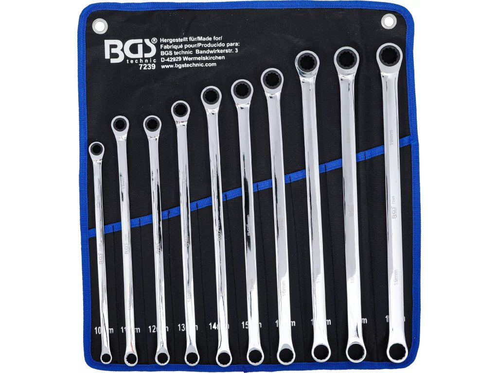 BGS sada račňových očkových kľúčov extra dlhé 10–19 mm – 10 dielna