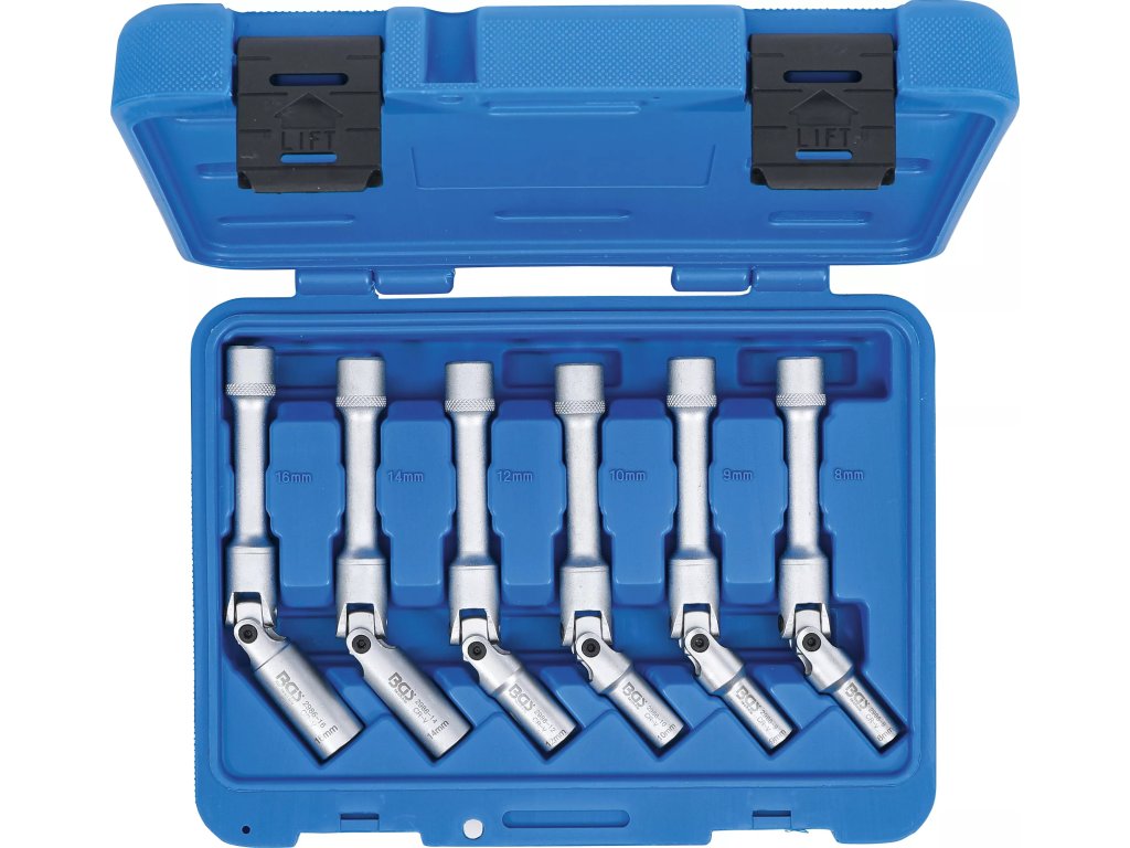 Profesionálna sada 6 kĺbových hlavíc na žhaviace sviečky s 3/8" (10 mm) vnútorným štvorhranom, určená na montáž a demontáž žhaviacich sviečok v ťažko prístupných miestach.