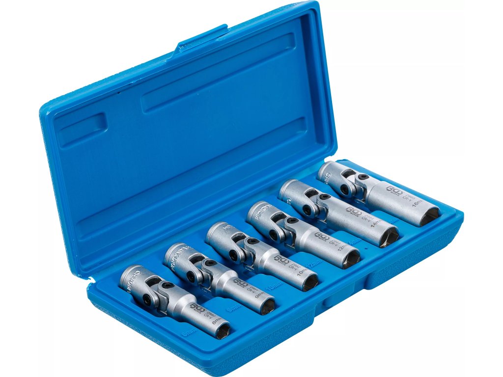 Profesionálna sada 6 kĺbových hlavíc na žhaviace sviečky s 3/8" (10 mm) vnútorným štvorhranom, určená na montáž a demontáž žhaviacich sviečok v ťažko prístupných miestach.