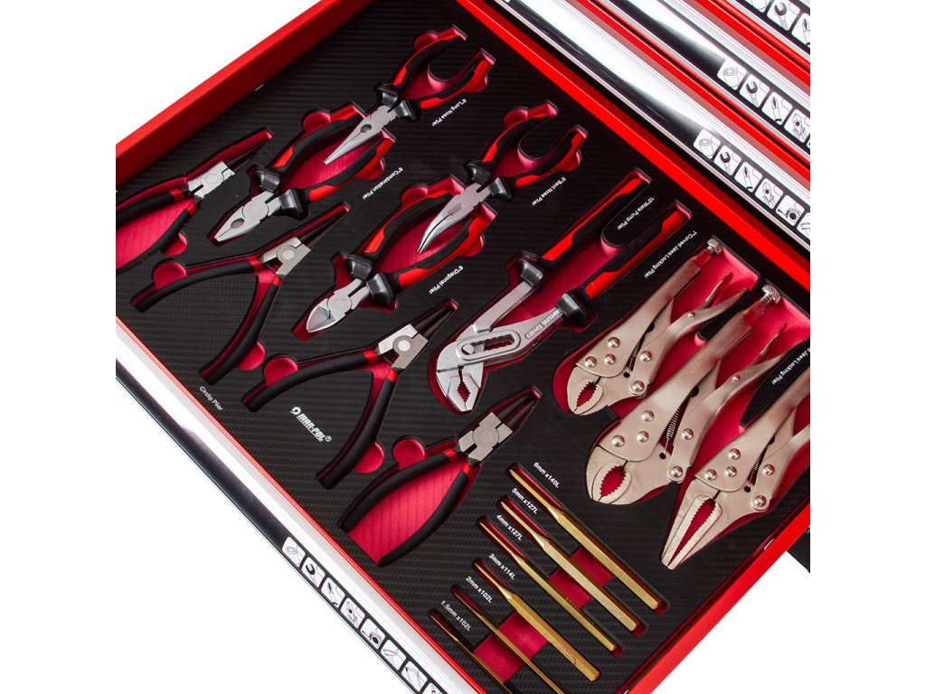 Dielenský vozík so 7 zásuvkami a 263-dielnou sadou náradia. Robustná oceľová konštrukcia, centrálne zamykanie, kolieska s brzdou.