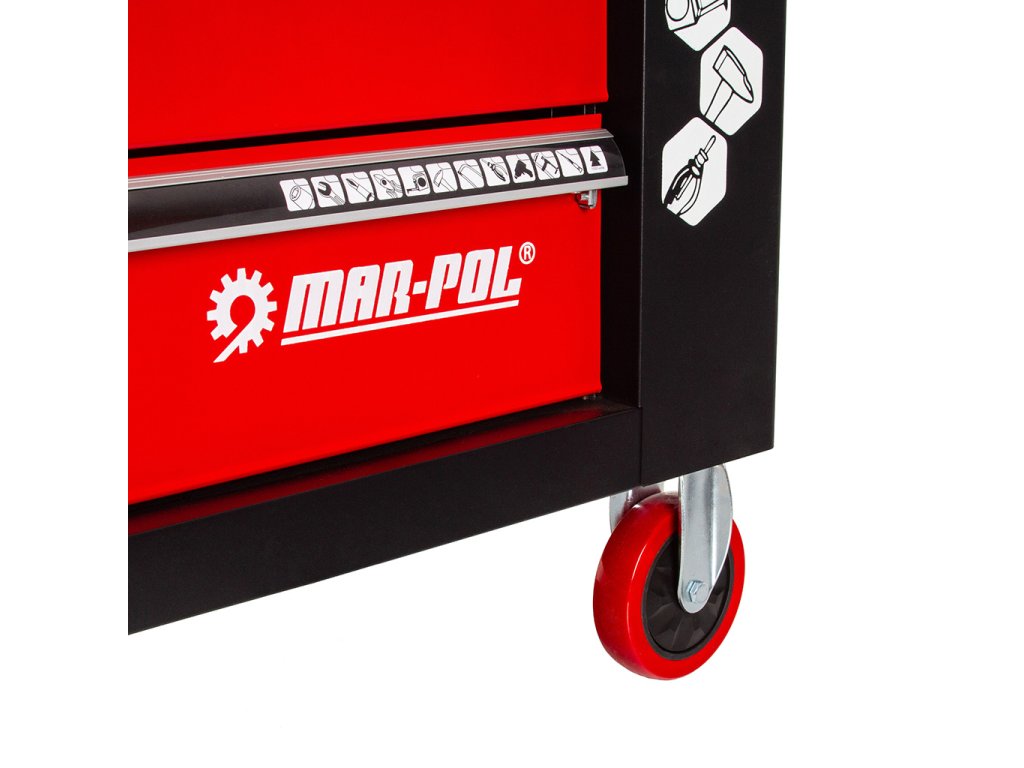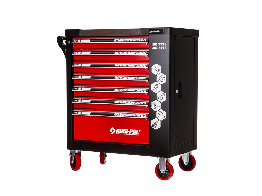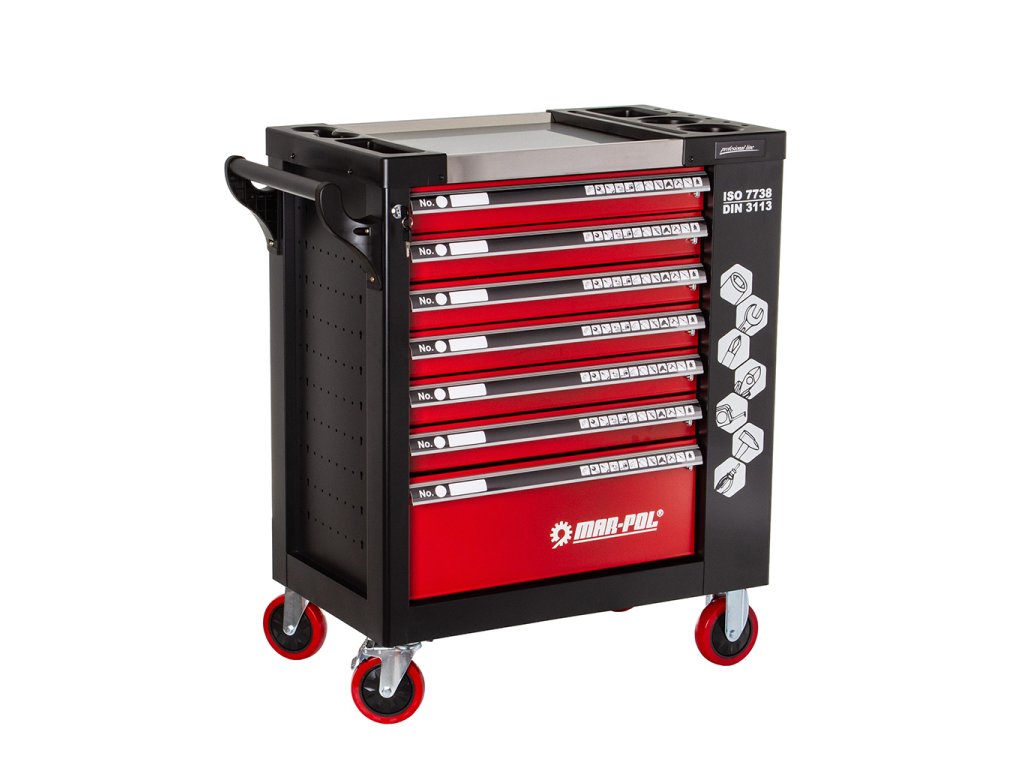 Dielenský vozík Mar-Pol M66602 predstavuje ideálne riešenie pre každého, kto potrebuje mať perfektné náradie vždy po ruke a zároveň zorganizované. Vďaka 7 priestranným zásuvkám a kompletnej sade náradia (263 dielov) je tento vozík ideálny do autoservisov, dielní, garáží aj na pracovisku s vysokými nárokmi na vybavenie.