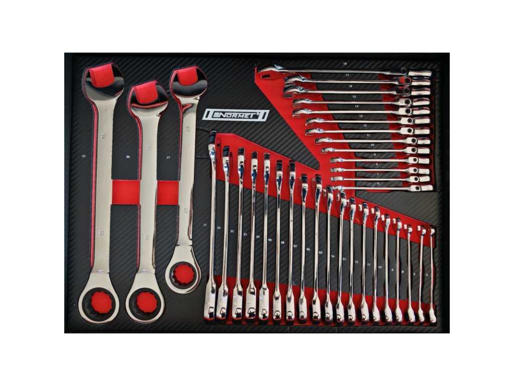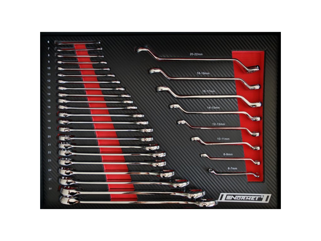 - Vyhnutý očkový kľúč 6–7, 8–9, 10–11, 12–13, 14–15, 16–17, 18–19, 20–22