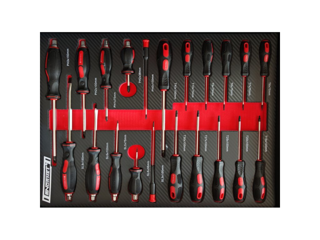 - Torx skrutkovač typ L T10×75 mm, T15×100 mm, T20×100 mm, T25×150 mm, T27×150 mm, T30×100 mm, T40×150 mm, T45×200 mm, T50×200 mm