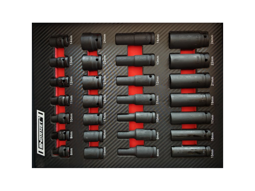 - Rázová nástrčka 1/2" krátka 8, 9, 10, 11, 12, 13, 14, 15, 16, 17, 19, 21, 22, 24 mm