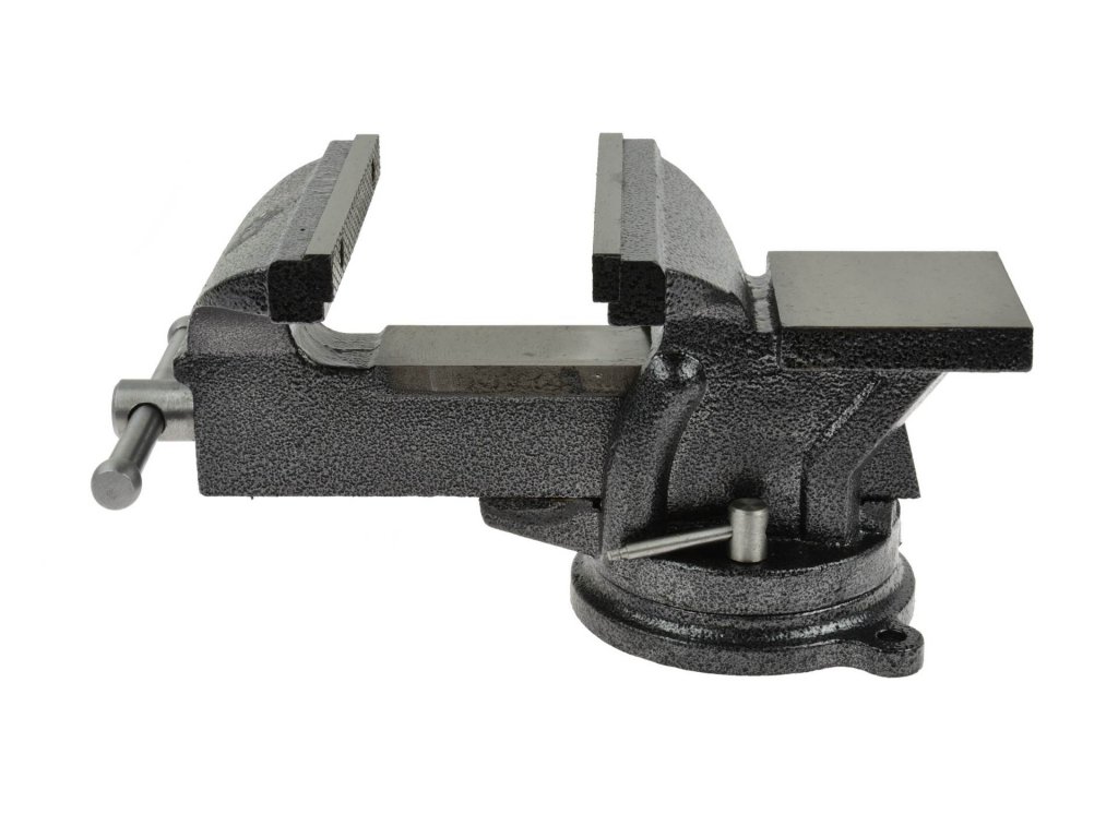 Robustný dielenský zverák so šírkou čeľustí 150 mm (6"), otočnou základňou 360° a kalenými čeľusťami. Ideálny na upínanie pri rezaní, pilníkovaní, vŕtaní či montážnych prácach.