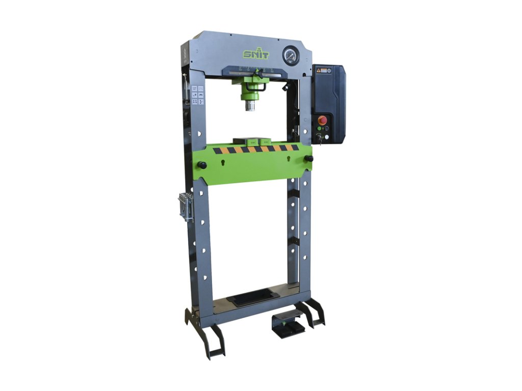 Kompaktný elektrický lis s max. silou 20 t. Dvojrýchlostný chod pre rýchly prístup a presné lisovanie, nožný pedál, LED osvetlenie a bezpečnostný ventil. Verzia HM s nastaviteľným stolom a sadou nástavcov.