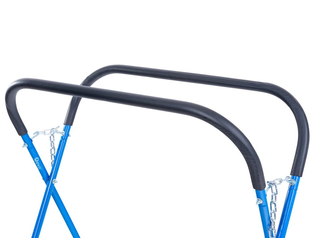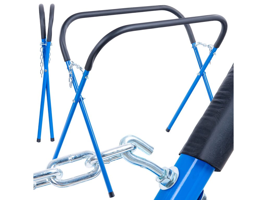 Kontaktné plochy sú opatrené ochrannou penou, ktorá chráni povrch dielov pred poškriabaním alebo otlakmi. Stabilizačné reťaze udržiavajú nastavenú šírku ramien a protišmykové koncovky nôh zabezpečujú pevné státie aj na hladkej podlahe.