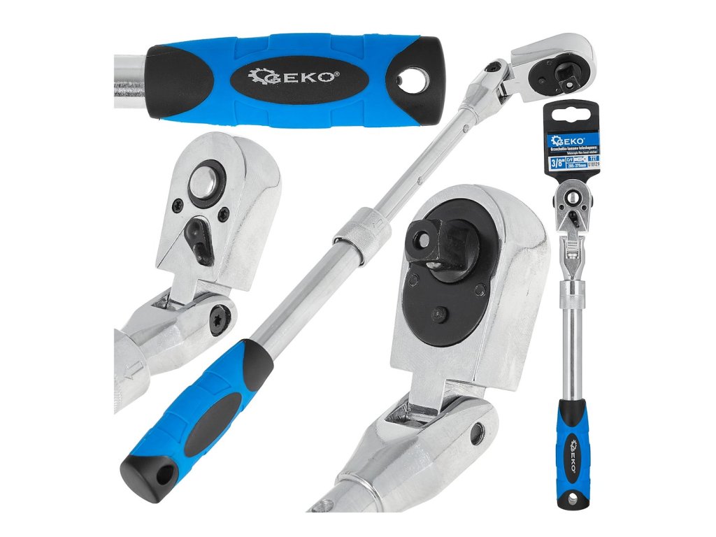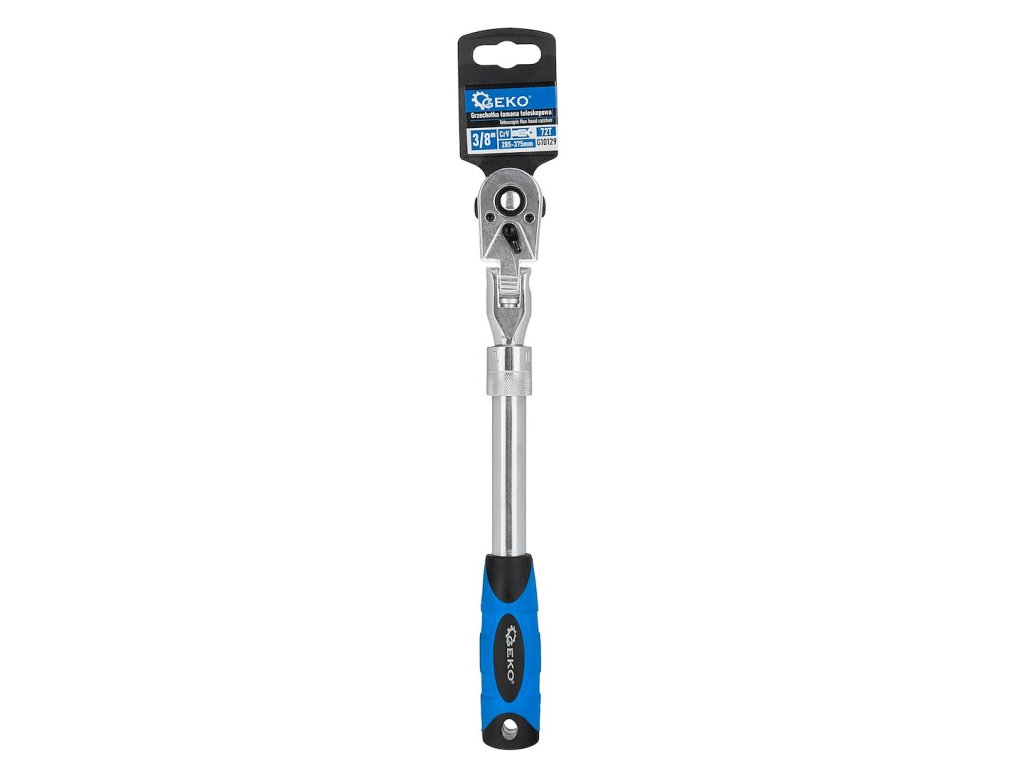 GEKO – teleskopická račňa s kĺbovou hlavou 3/8″, 285–375 mm, 72T (CrV)