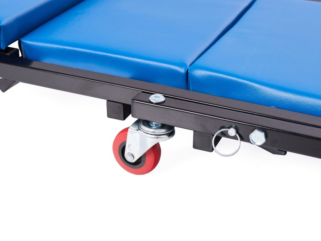 GEKO G02106 je univerzálne montážne lehátko a dielenská stolička v jednom, navrhnuté pre komfortnú prácu v garáži alebo dielni. Je vybavené čalúneným sedadlom, pevným oceľovým rámom a šiestimi otočnými kolieskami pre maximálnu mobilitu. Vďaka skladacej konštrukcii možno lehátko rýchlo a jednoducho premeniť na praktickú servisnú stoličku bez potreby náradia.