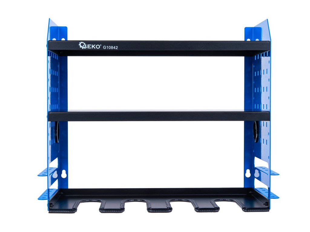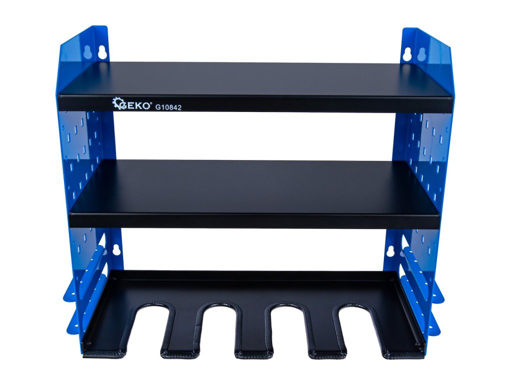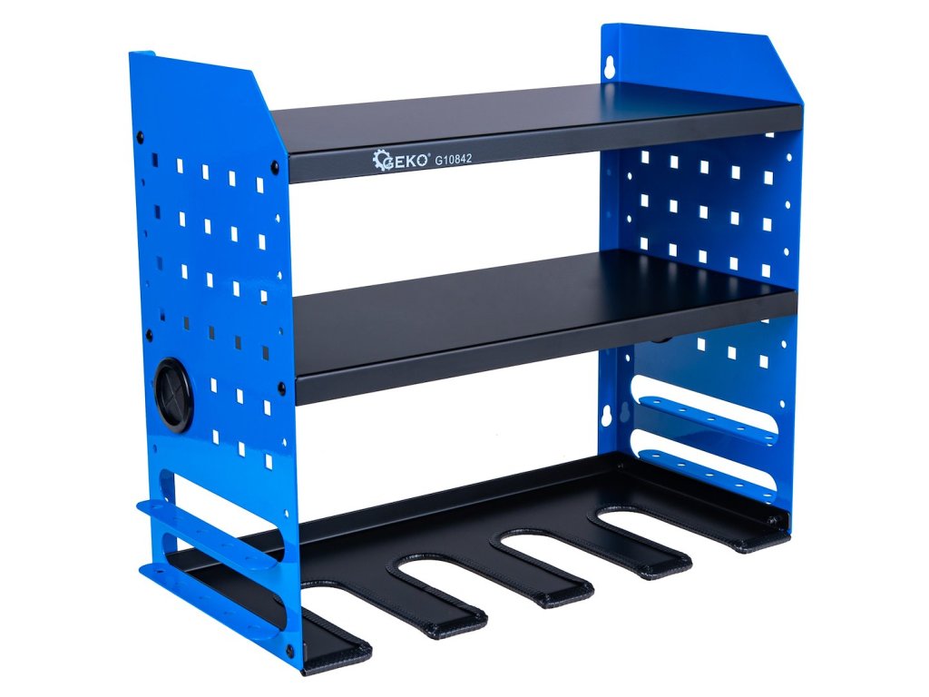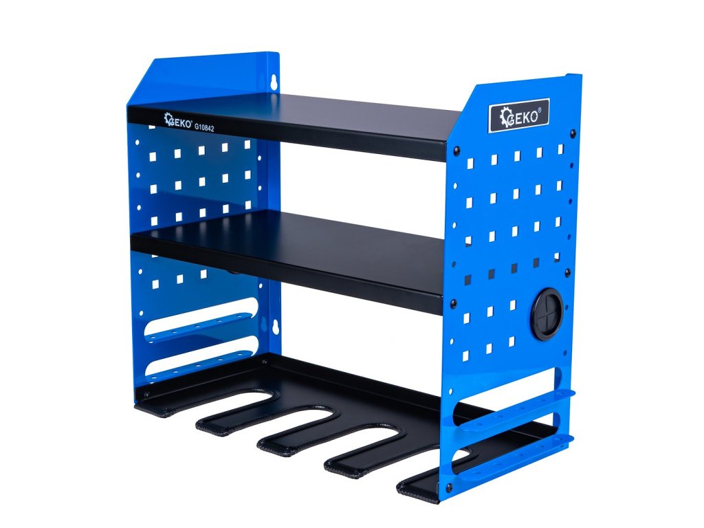 Kvalitná dielenská polica GEKO G10842 je navrhnutá pre efektívnu organizáciu najčastejšie používaného elektrického a akumulátorového náradia. Oceľová konštrukcia s práškovým lakovaním zabezpečuje vysokú pevnosť, dlhú životnosť a odolnosť voči poškodeniu v náročnom dielenskom prostredí.