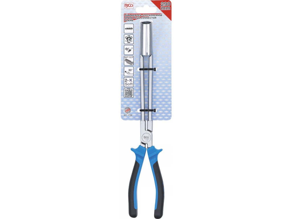 BGS technic 1739 sú extra dlhé kliešte na zapaľovacie sviečky s dĺžkou 290 mm, navrhnuté na bezpečné a efektívne vyberanie a nasadzovanie zapaľovacích káblov, najmä v ťažko prístupných oblastiach motorového priestoru. Ich ergonomický dizajn a kvalitné materiály zabezpečujú pohodlnú a dlhodobú prácu.