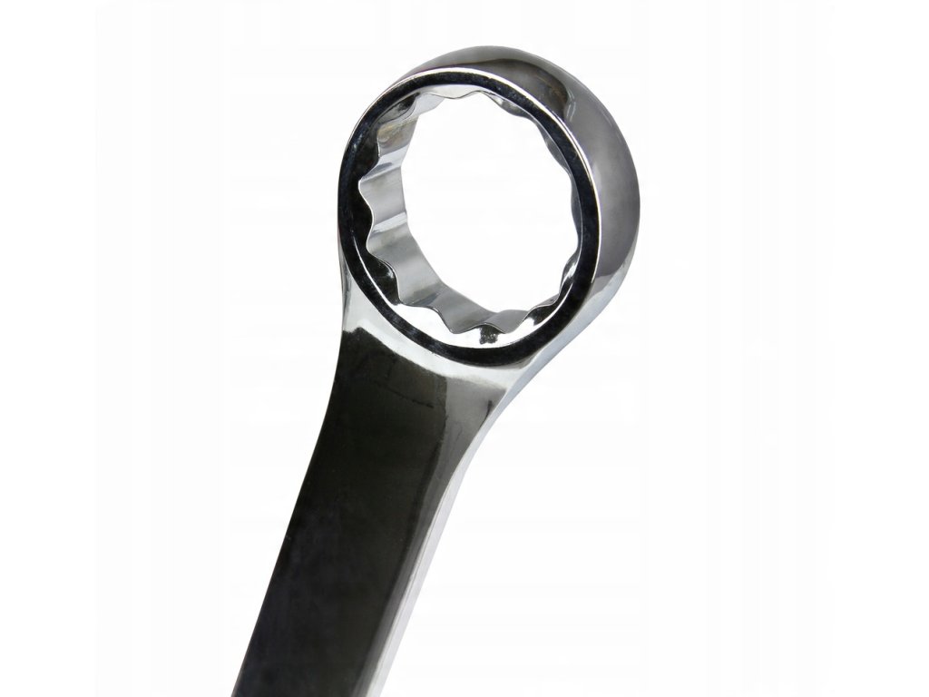 Kľúč kombinuje plochý otvorený koniec a očkový (zatvorený) koniec s profilovaným vnútrom pre bezpečný úchop. Je ideálny pre náročné dielenské práce, autoservisy, stavebnú techniku či priemyselné opravy.