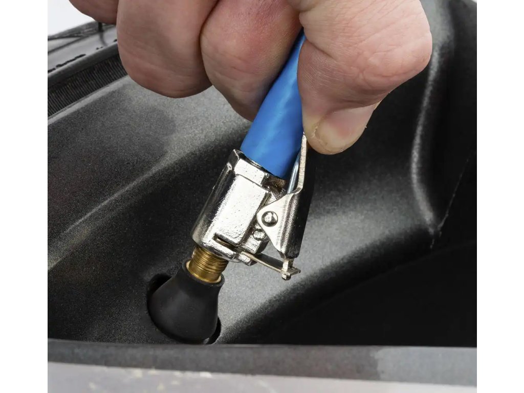 - Celokovová hustilka pneumatík so štandardným automobilovým ventilom (priemer závitu 8 mm).
