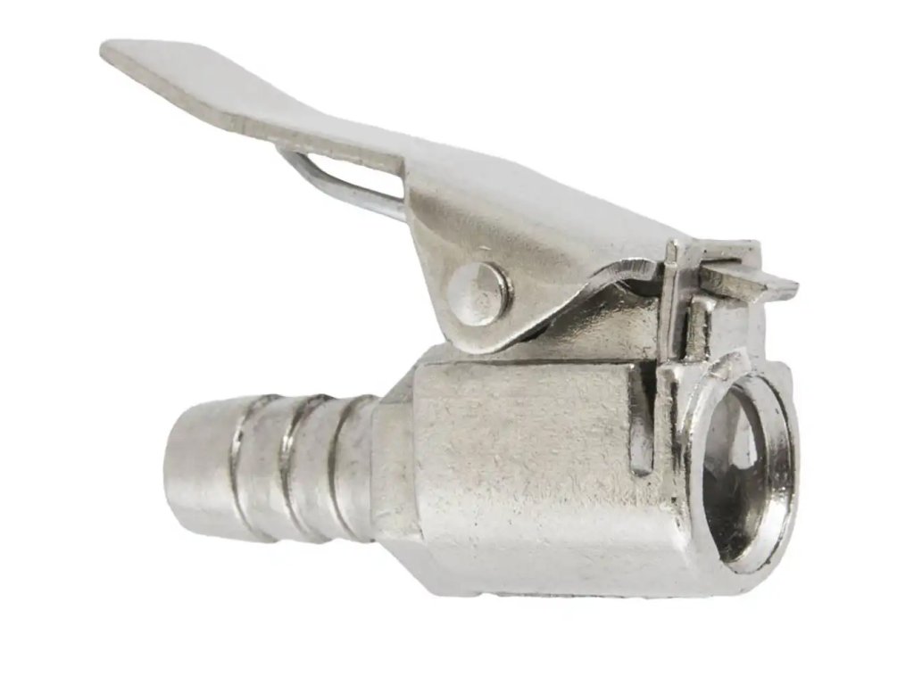 Celokovová hustilka pneumatík so štandardným automobilovým ventilom (priemer závitu 8 mm).