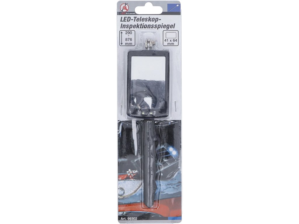 LED teleskopické inšpekčné zrkadlo je nevyhnutným pomocníkom v každej dielni a autoservise. Umožňuje rýchlu vizuálnu kontrolu miest, kam sa oko ani bežné náradie nedostane. Sklopné a otočné zrkadlo v kombinácii s dvomi integrovanými LED diódami zabezpečuje výbornú viditeľnosť aj v tmavých a stiesnených priestoroch. Protišmyková rukoväť zaručuje bezpečný a komfortný úchop pri práci.