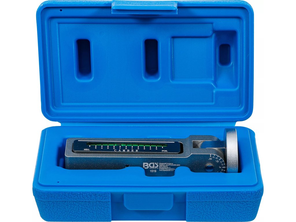 BGS technic 1519 je magnetický nástroj na nastavenie odklonu kolies (camber), navrhnutý pre presné meranie a nastavenie uhla zavesenia kolies pred a po demontáži odpruženia. Vďaka svojej dvojitej nastaviteľnosti je ideálny pre profesionálne autoservisy aj náročných domácich majstrov.