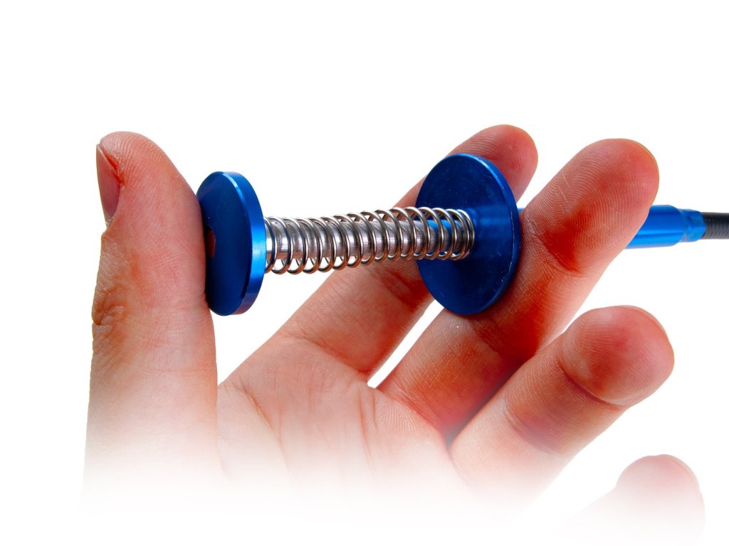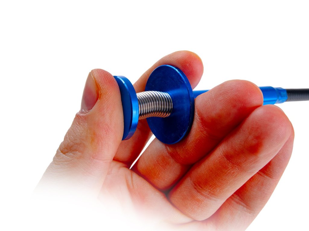Flexibilný magnetický vyťahovač s pazúrikom (dlžka 68 cm) na vyberanie skrutiek, matíc a drobných kovových dielov z ťažko prístupných miest. Kombinuje mechanický pazúrik a magnetickú špičku.
