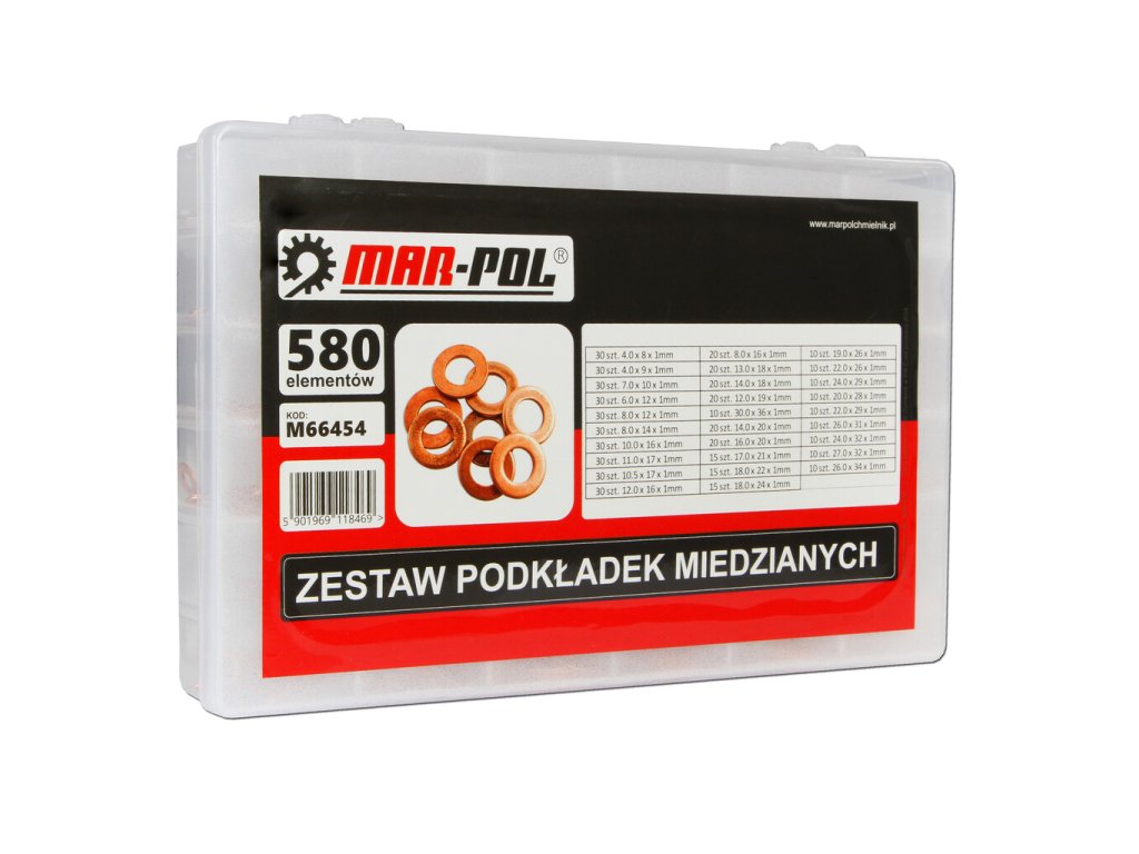 Marpol – sada medených podložiek 580 ks (30 rozmerov)
