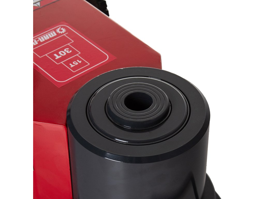 - Dvojstupňový teleskopický piest (15/30 t) Teleskopický piest pracuje v dvoch stupňoch zdvihu – prvý stupeň s nižším zaťažením, druhý s plnou nosnosťou 30 t. V praxi znamená rýchlejšie a efektívnejšie zdvíhanie s možnosťou jemného „doťahovania“ vozidla do maximálnej výšky.