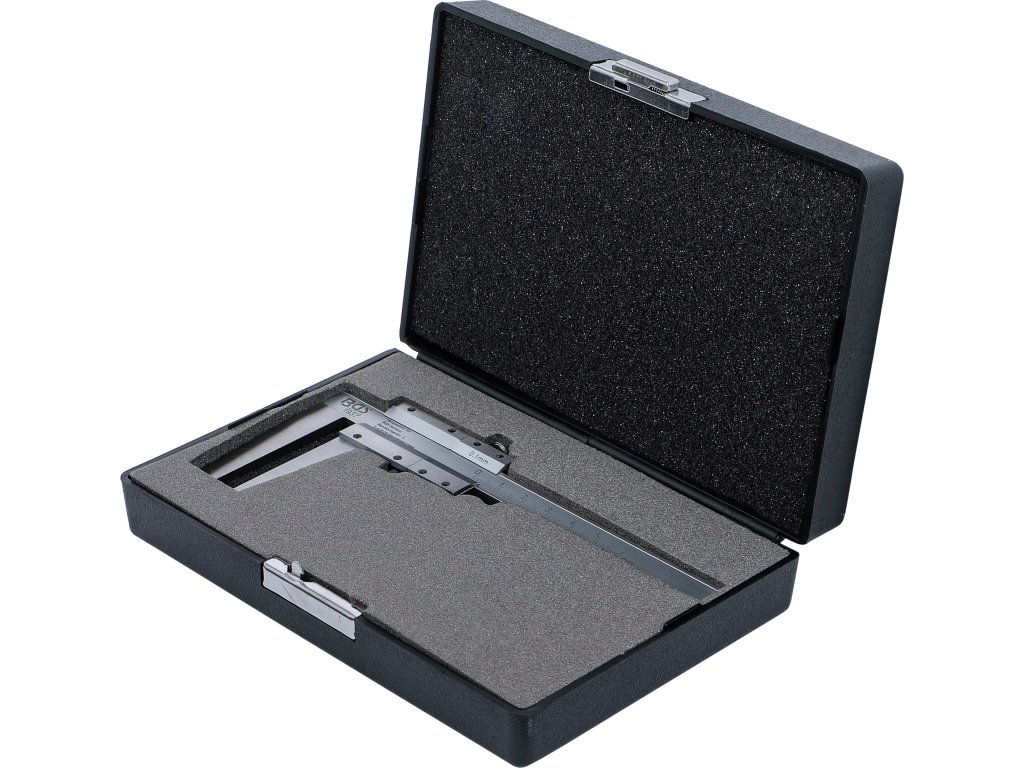 Tento presný merák z nehrdzavejúcej ocele je určený na rýchle a spoľahlivé meranie hrúbky brzdových kotúčov bez demontáže kolesa (podľa prístupu). Nerezové vyhotovenie zaručuje dlhú životnosť a odolnosť voči korózii v dielenských podmienkach. Jasne tvarované meracie čeľuste uľahčujú ustavenie na kotúč a znižujú riziko chybného odčítania. Dodáva sa v kompaktnej plastovej kazete, ktorá chráni nástroj pri prenášaní a skladovaní.