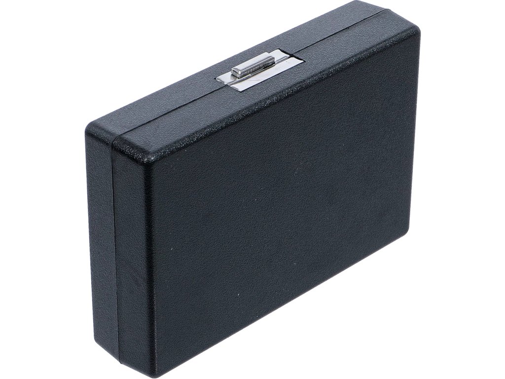 Nerezová konštrukcia je odolná voči korózii a opotrebeniu, vhodná na každodenné používanie v servise. Plastová kazeta udrží nástroj chránený, prehľadne uložený a pripravený na rýchle nasadenie v prevádzke alebo pri výjazdoch.