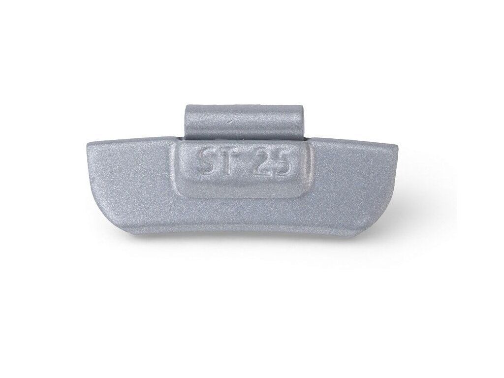 Závažie má sivú práškovú povrchovú úpravu, ktorá chráni povrch pri skladovaní aj každodennom dielenskom používaní. Hmotnosť 25 g je vhodná pri väčšej potrebe korekcie nevyváženosti podľa údajov z vyvažovačky. Balenie po 100 kusov je praktické najmä pre prevádzky s pravidelnou spotrebou.
