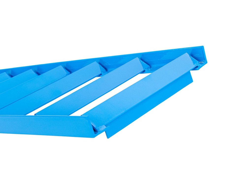 Vďaka nízkemu profilu s výškou len 3 cm predĺženia nenarúšajú geometriu rampy, no zároveň poskytujú dostatočnú pevnosť a stabilitu. Sú vyrobené z 3 mm hrubej ocele, ktorá odoláva vysokému zaťaženiu a deformácii aj pri častom používaní. Integrovaný montážny hák zabezpečuje pevné dosadnutie na rampu a eliminuje riziko posunutia počas nájazdu.