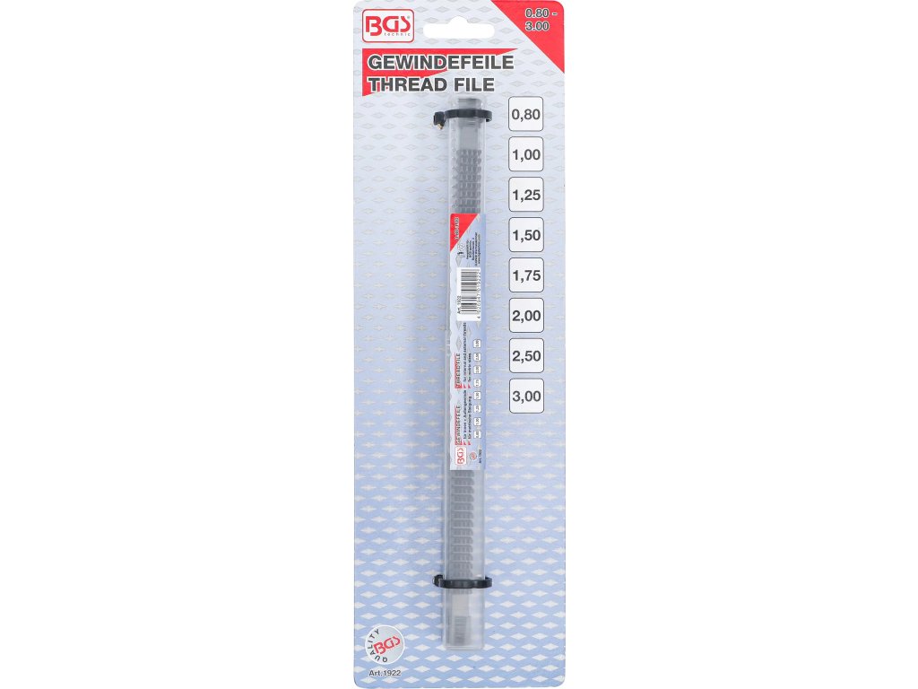 BGS technic 1922 je profesionálny nástroj na obnovu poškodených vonkajších závitov v metrickom rozsahu 0,80 – 3,00 mm. Je ideálny pre autoservisy, strojárske dielne a údržbárov, ktorí potrebujú rýchlo a presne opraviť poškodené závity bez nutnosti výmeny celého komponentu.