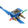 - 3/8" guľové ventily s pohodlnými farebne odlíšenými páčkami: prívod - zelený, vypúšťací - červený,