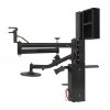 - Kladkostroj na kĺbovom ramene, takzvaná "tretia ruka" uzamkne pätku pneumatiky pod okrajom ráfika počas montáže a potom sa otáča spolu s kolesom. Je možné nastaviť výšku v závislosti od tuhosti pneumatiky