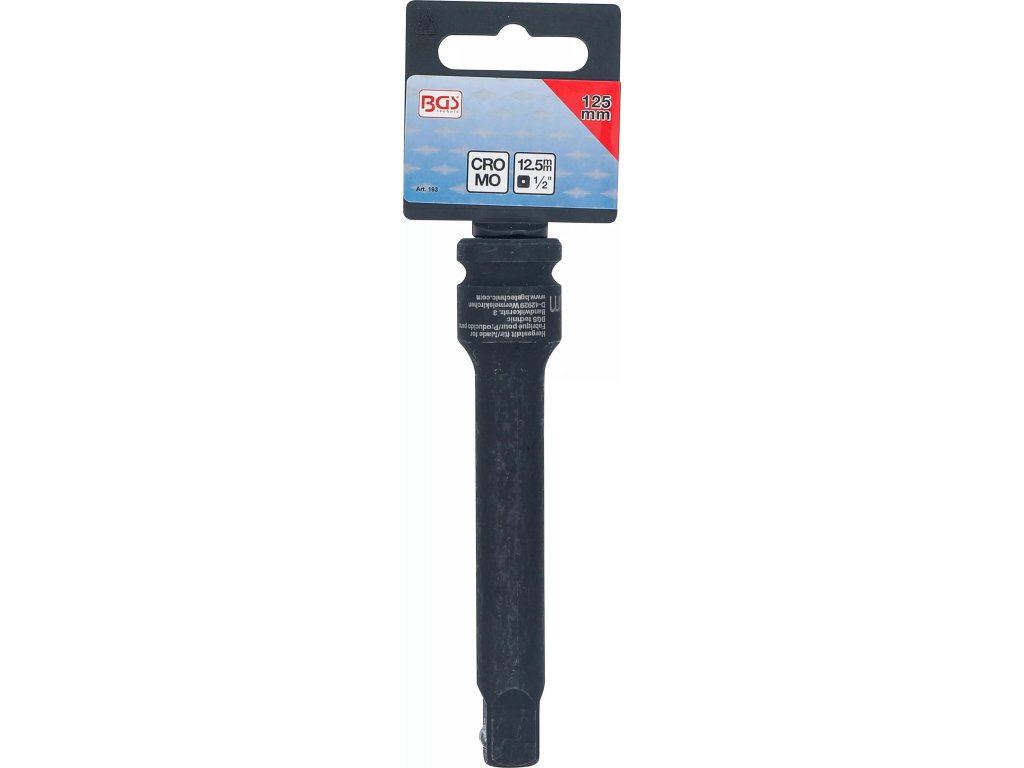 BGS technic 193 je robustný nástavec – predĺženie pre rázové uťahovače s 1/2" (12,5 mm) štvorhranom, navrhnutý pre náročné dielenské a servisné aplikácie. Vďaka svojej pevnej konštrukcii z chróm-molybdénovej ocele je ideálny na prácu s vysokým krútiacim momentom.