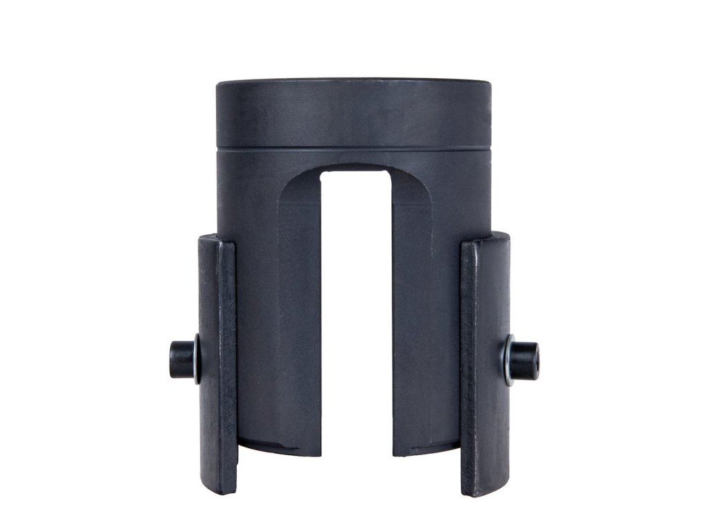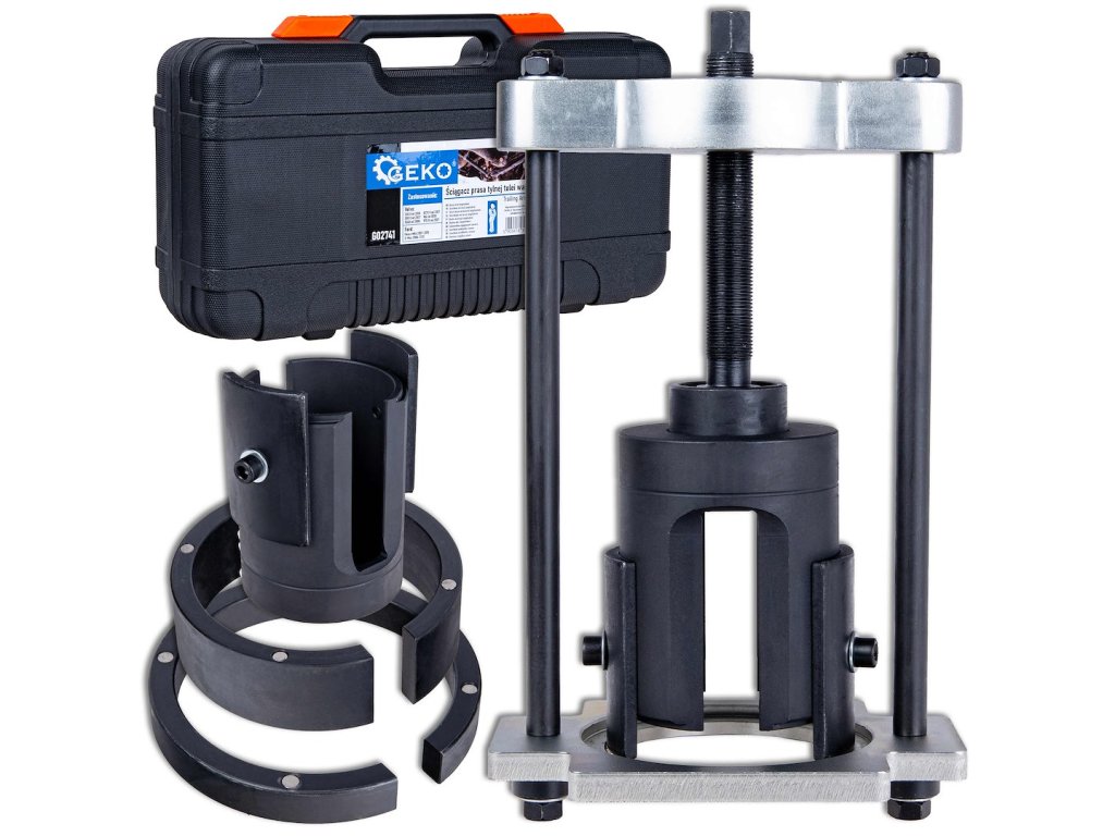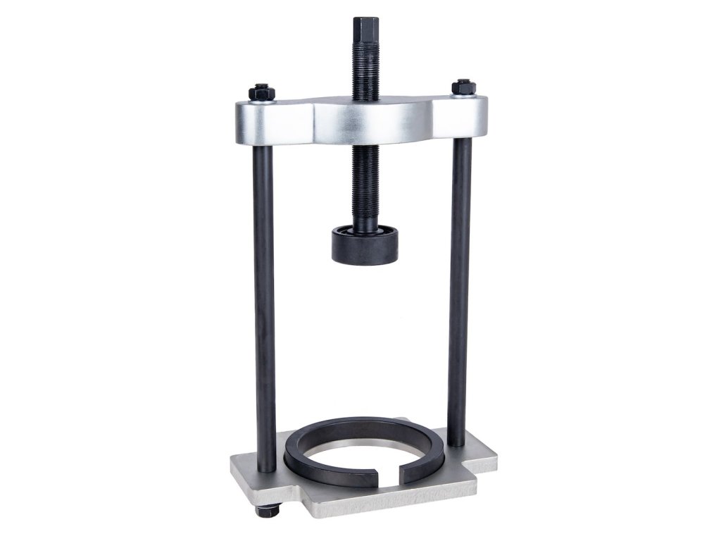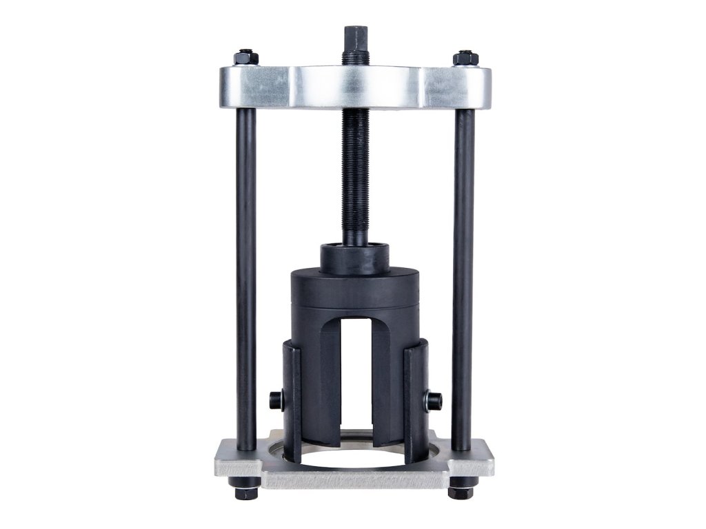 Konštrukcia z kalenéj (hardened) ocele, pevný rám a presne vedená pracovná skrutka zabezpečujú rovnomerné rozloženie sily a presné uloženie silentbloku bez jeho naklonenia. Segmentové pracovné vložky umožňujú lepšie prispôsobenie rôznym typom silentblokov a uľahčujú prácu aj v stiesnených priestoroch.