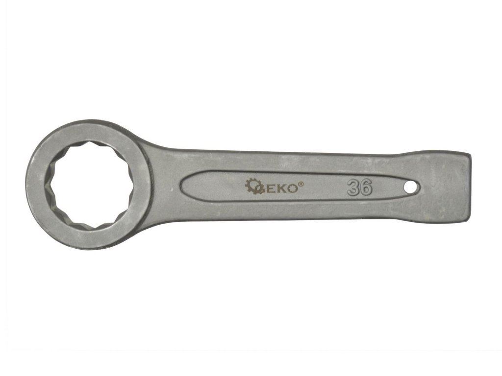 Profesionálny rázový očkový kľúč 36 mm určený na povoľovanie a uťahovanie veľmi pevných a zapečených spojov pomocou úderov kladivom alebo pneumatickým kladivom. Vyhotovený z chróm-vanádiovej ocele (CrV) pre extrémne namáhané pracovné podmienky.