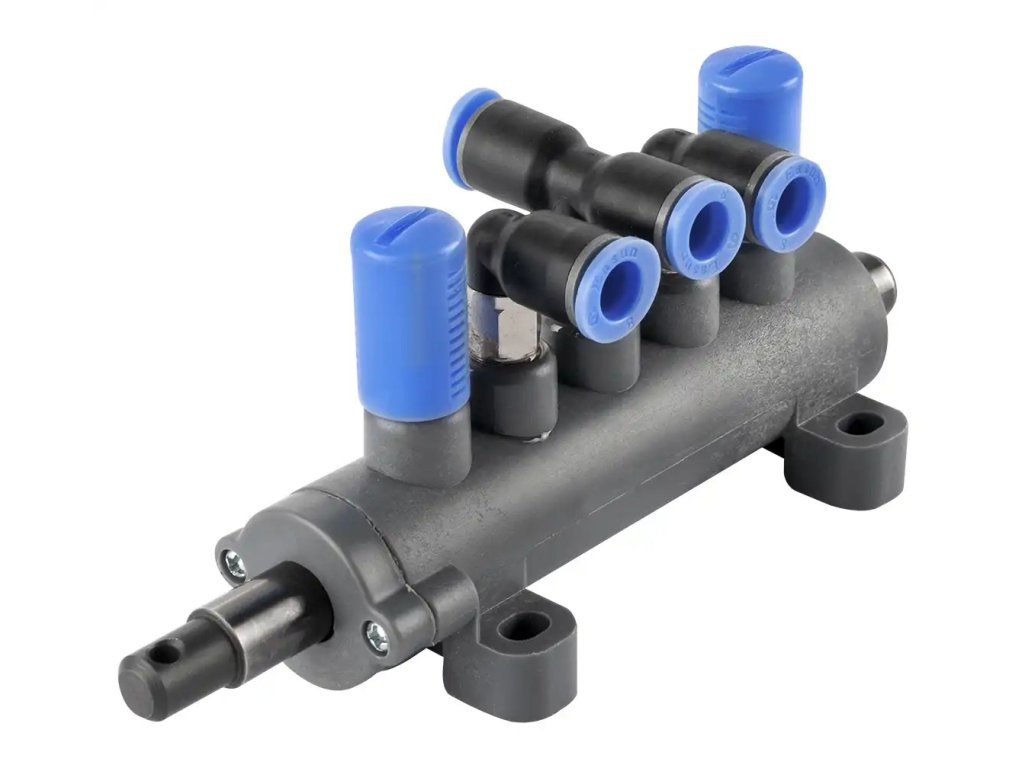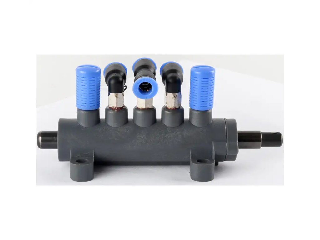 Kompletný rozvádzač vzduchu je náhradný diel pre prezúvačku pneumatík REDATS. Slúži na správne rozdelenie a riadenie prívodu vzduchu v zariadení.