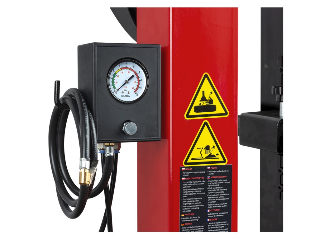 Výbava | Filtračno-mazací set, pištoľ s manometrom, plastové nadstavce, montážna lyžica, zásobník na náradie, 3D2 rameno, tretia ruka |