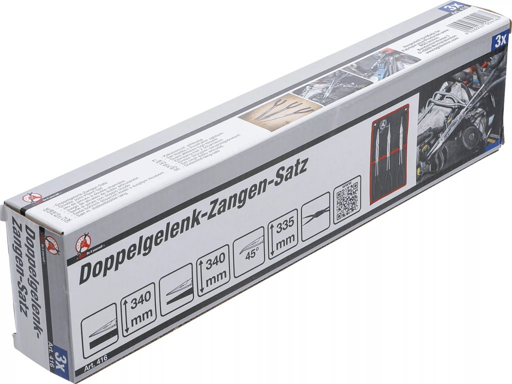 Táto sada klieští s dvojitým kĺbovým mechanizmom umožňuje výrazne väčší rozsah otvorenia čeľustí bez nutnosti širokého roztvorenia rukovätí. Vďaka tomu sú kliešte ideálne na servisné a montážne práce v miestach s obmedzeným prístupom, ako sú motorové priestory, technické šachty alebo úzke montážne priestory. Dlhé ramená poskytujú lepší dosah a presnú kontrolu pri práci. Pogumované, ponorovo lakované rukoväte zabezpečujú istý a pohodlný úchop.