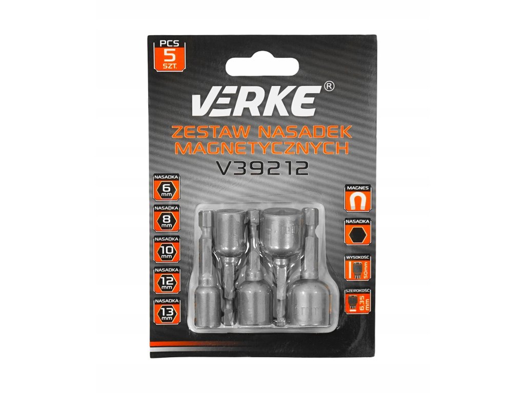 Praktická sada magnetických nástrčných hlavíc VERKE určená pre aku vŕtačky a skrutkovače. Najpoužívanejšie rozmery 6–13 mm s upínaním 1/4" zabezpečujú rýchlu a presnú prácu pri montážach.