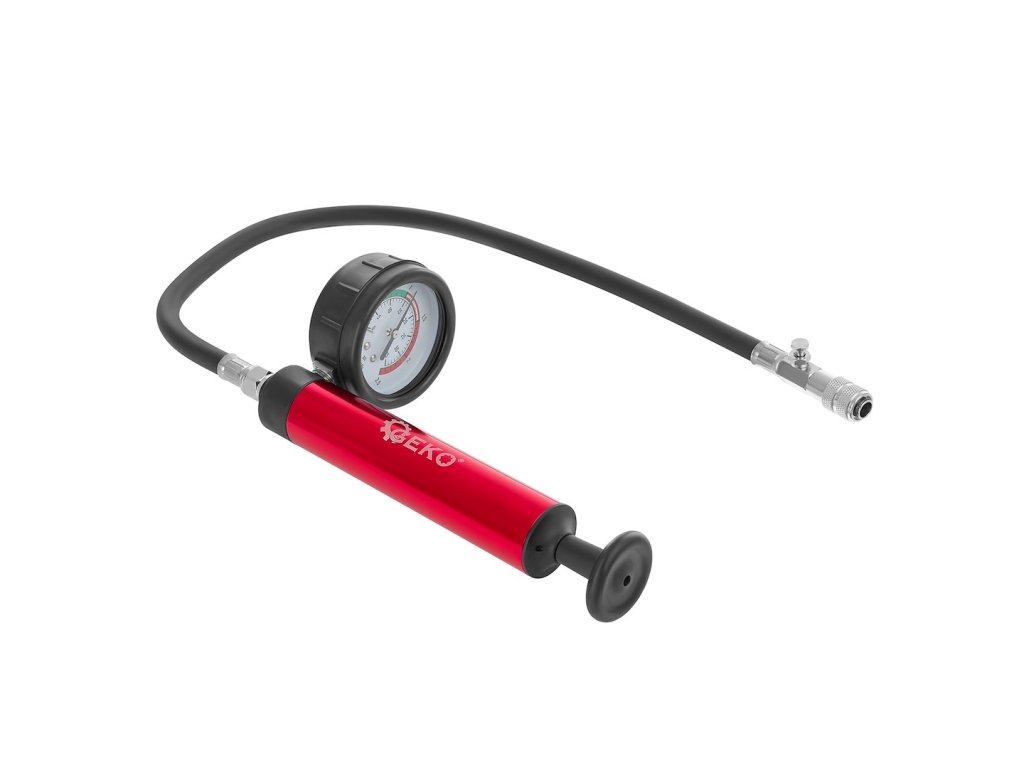 Tester slúži na lokalizáciu netesností v chladiacom systéme. Robustná ručná pumpa s hladkým chodom a ľahko čitateľnou stupnicou. Sada obsahuje aj 12 adaptérov pre rôzne značky áut a teplomer.